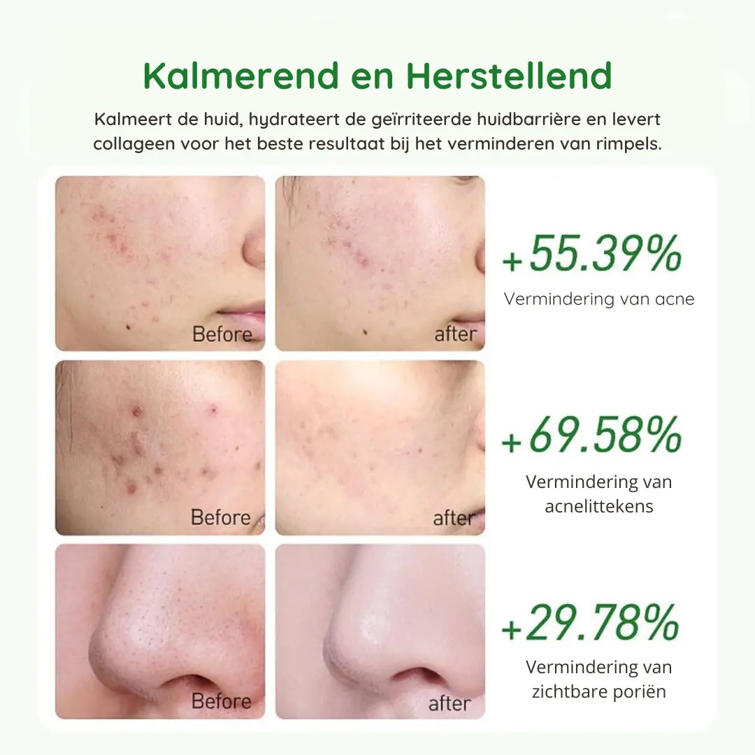 Our unique formula combines the soothing properties of Centella Asiatica (CICA) with the purifying power of Tea Tree extract. These ingredients work together to calm, cleanse and hydrate your skin, while collagen firms the skin and reduces fine lines.