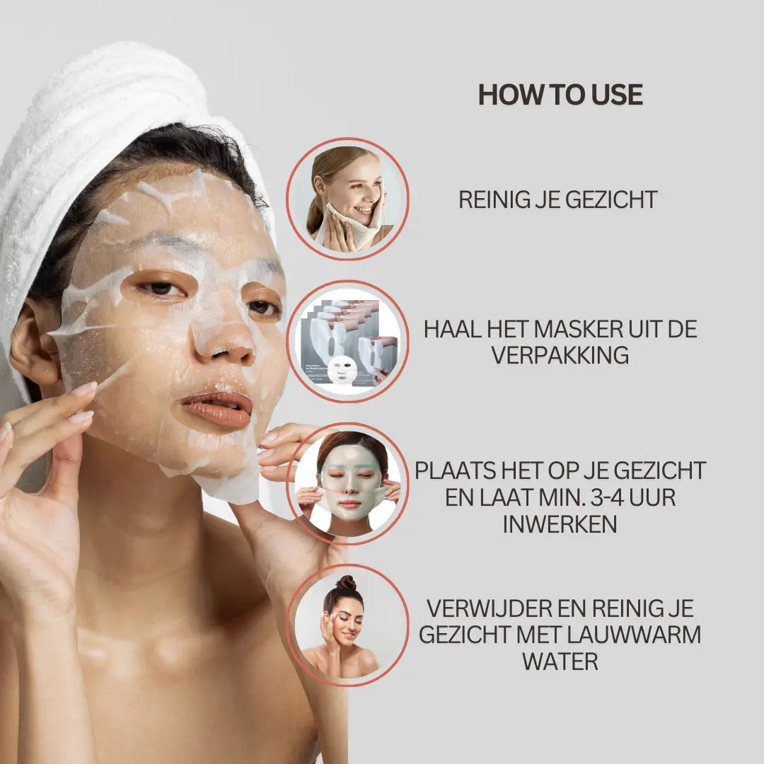 Wir empfehlen, die Maske mindestens 3 bis 4 Stunden einwirken zu lassen, damit die Gesichtsmaske vollständig transparent werden kann. Dann hat Ihre Haut die Wirkung der Maske optimal aufgenommen. Tipp: Tragen Sie die Maske nachts.